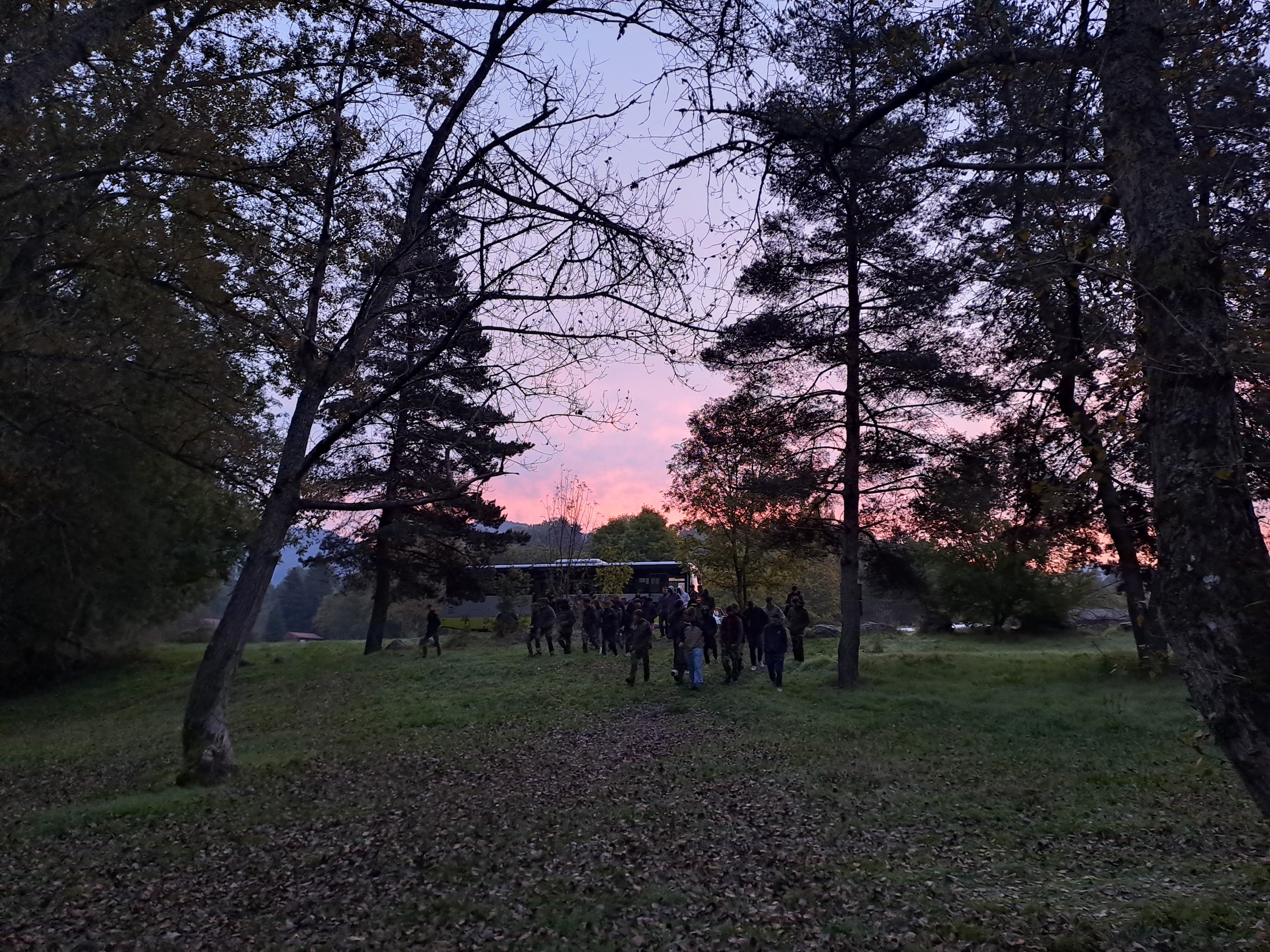 Les élèves du Bac Pro GMNF s’enfoncent dans les bois à la tombée de la nuit pour assister au brame du cerf. La brume, les odeurs de mousse et le souffle du vent accompagnent ce moment rare.